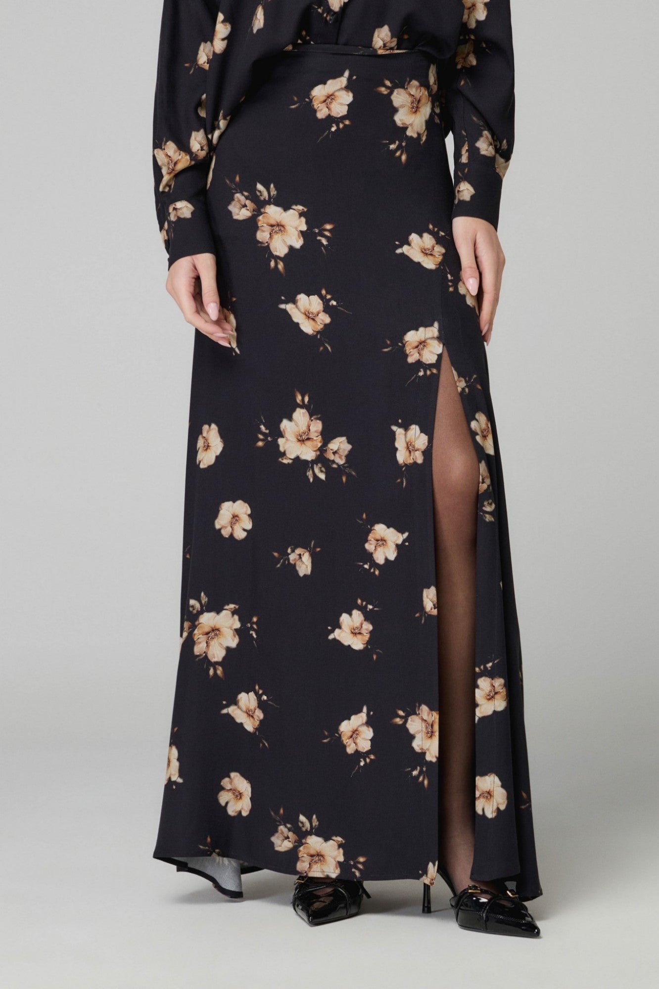 Anita - Gonna Lunga Svasata • Gardenia Nero Mar de Margaritas
