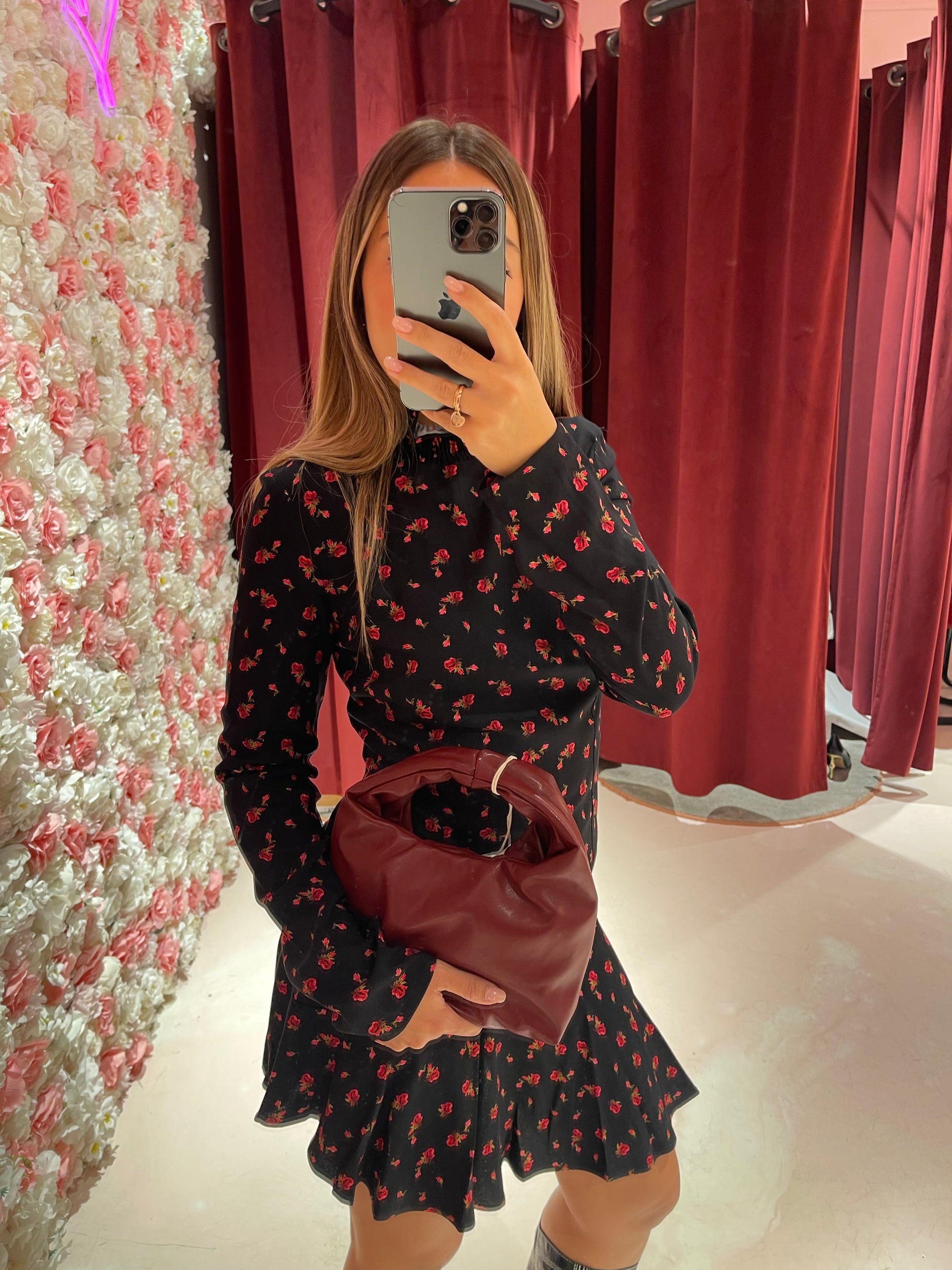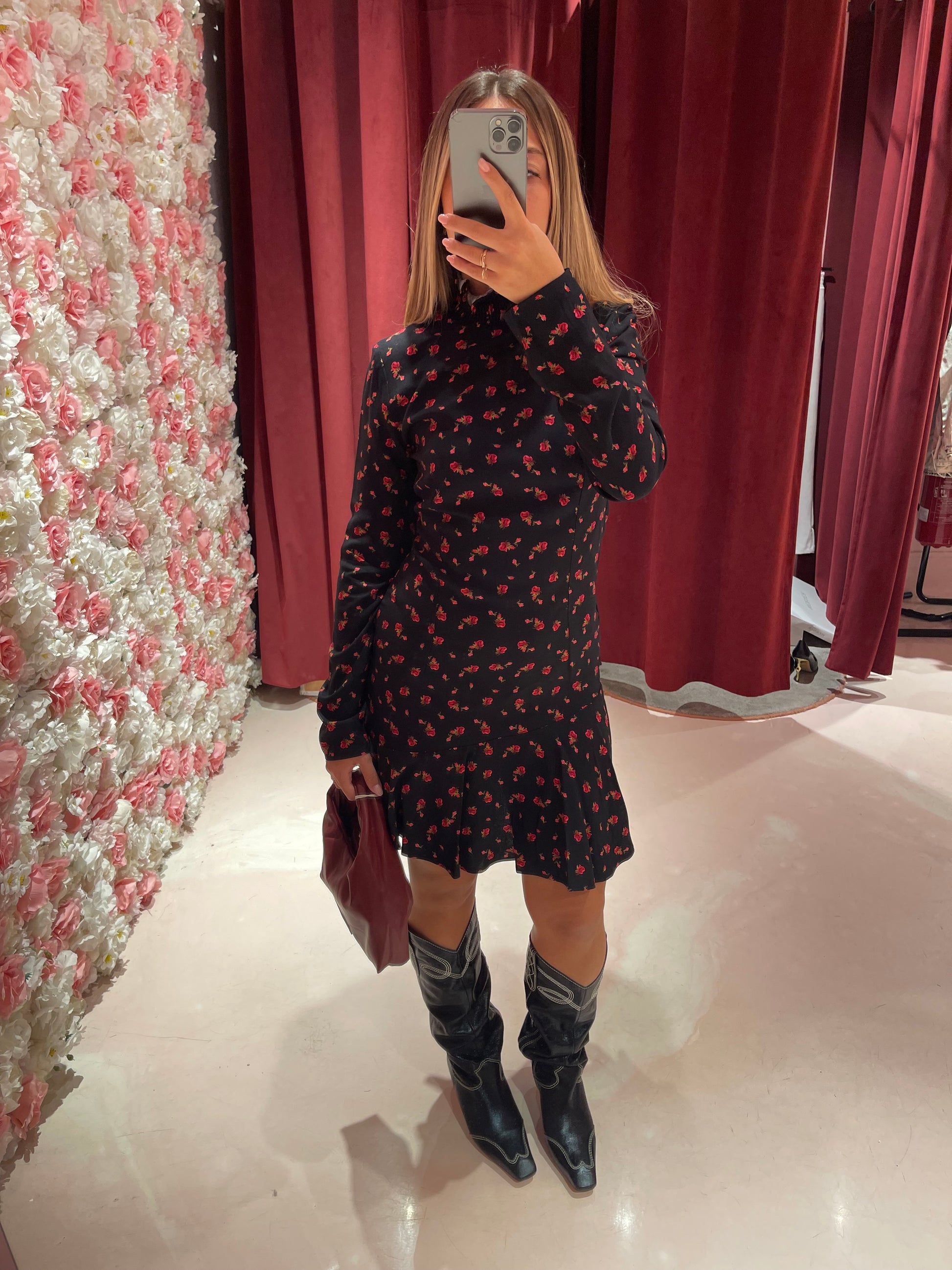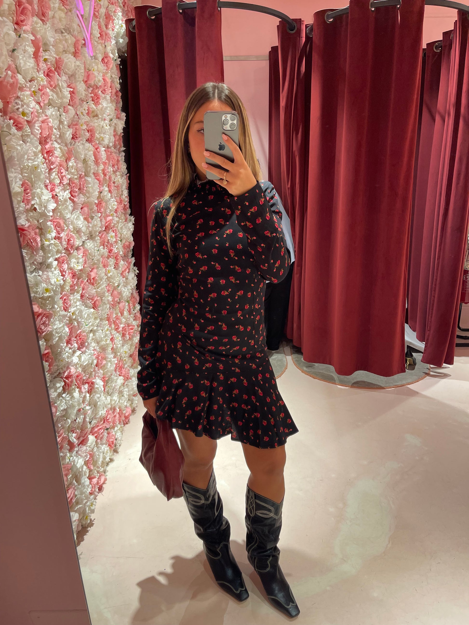 Astrid - Abito Corto Collo Dolcevita • Burgeon Nero Mar de Margaritas