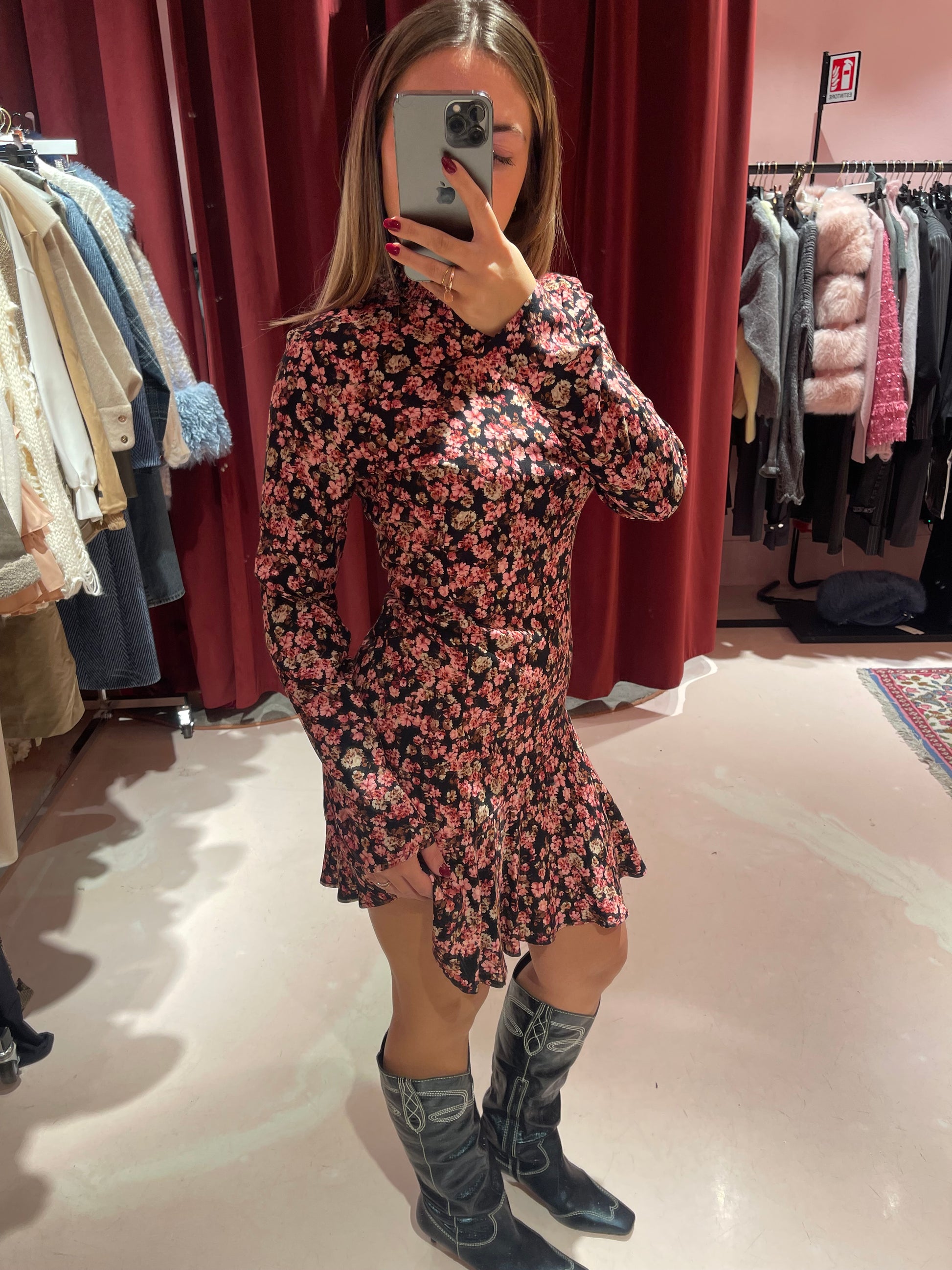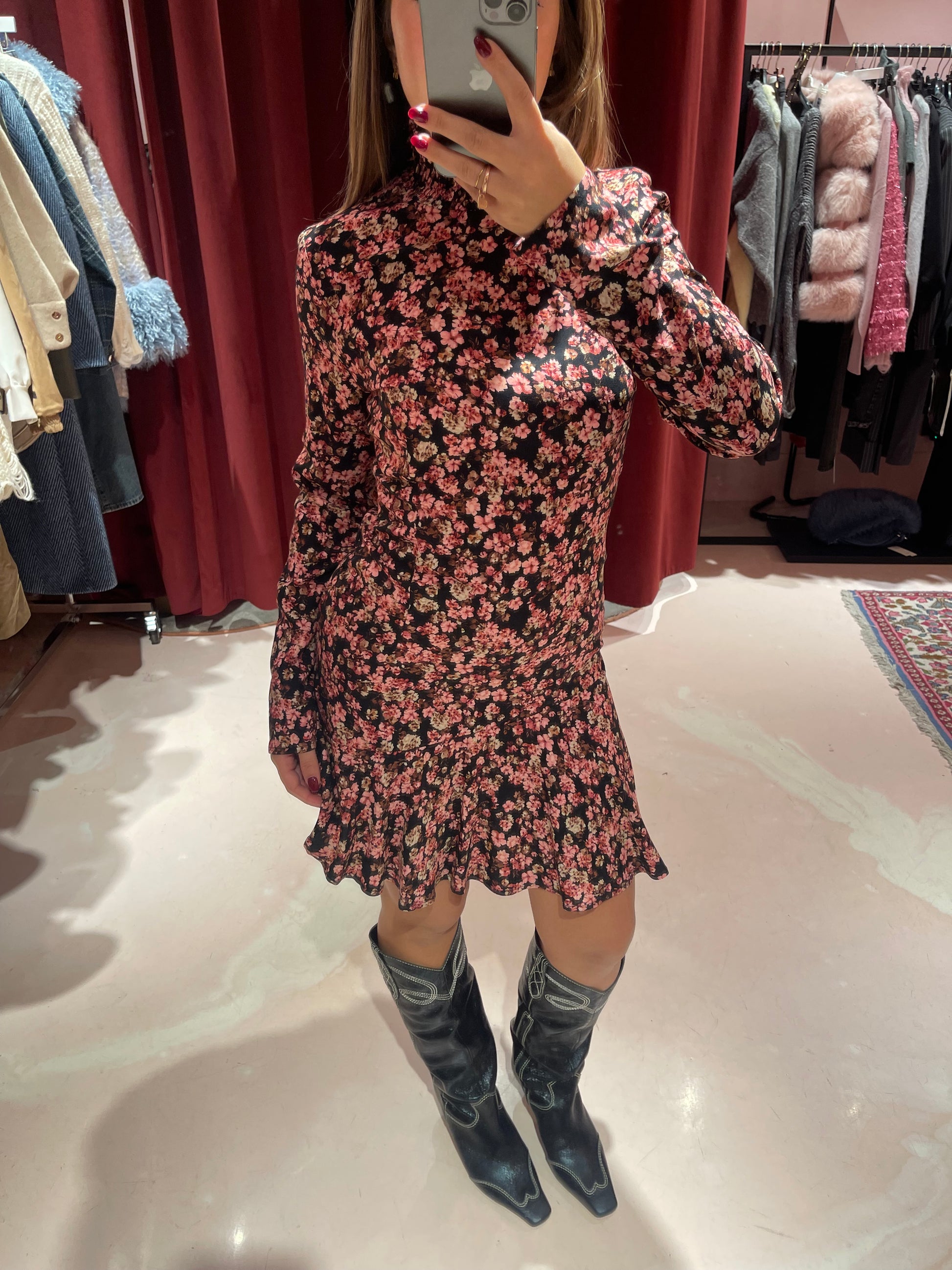 Astrid - Abito Corto Collo Dolcevita • Romance Nero Mar de Margaritas