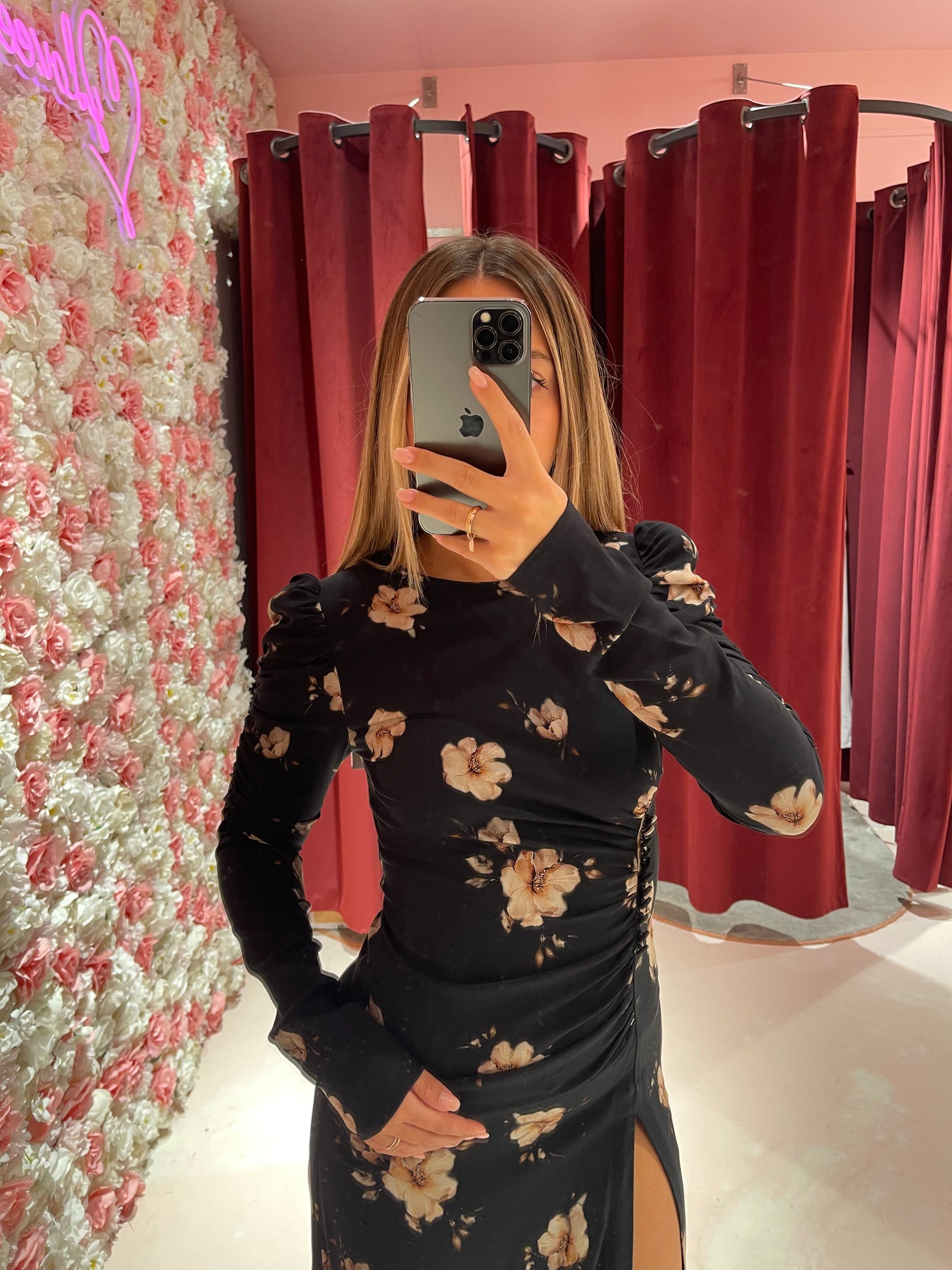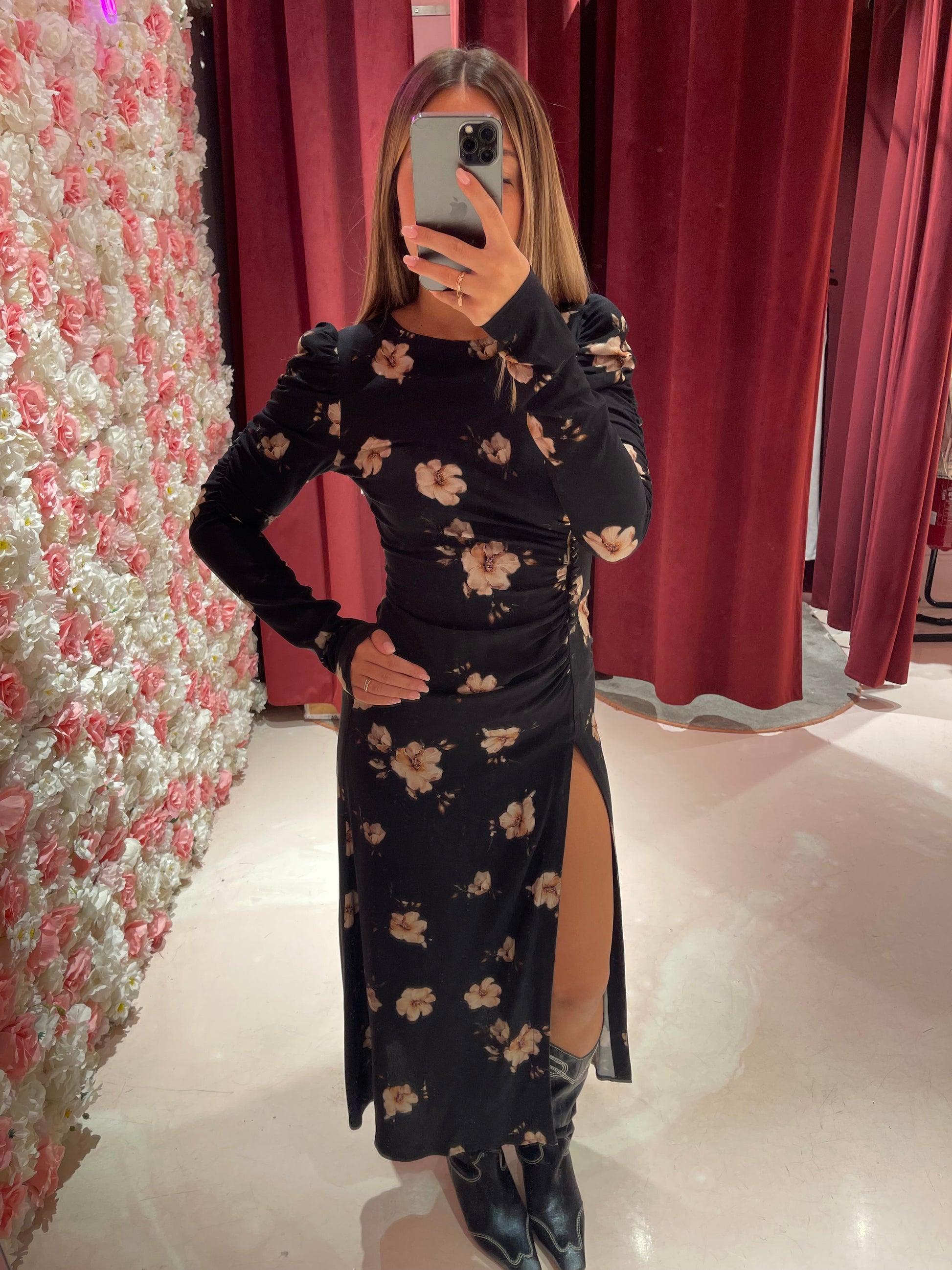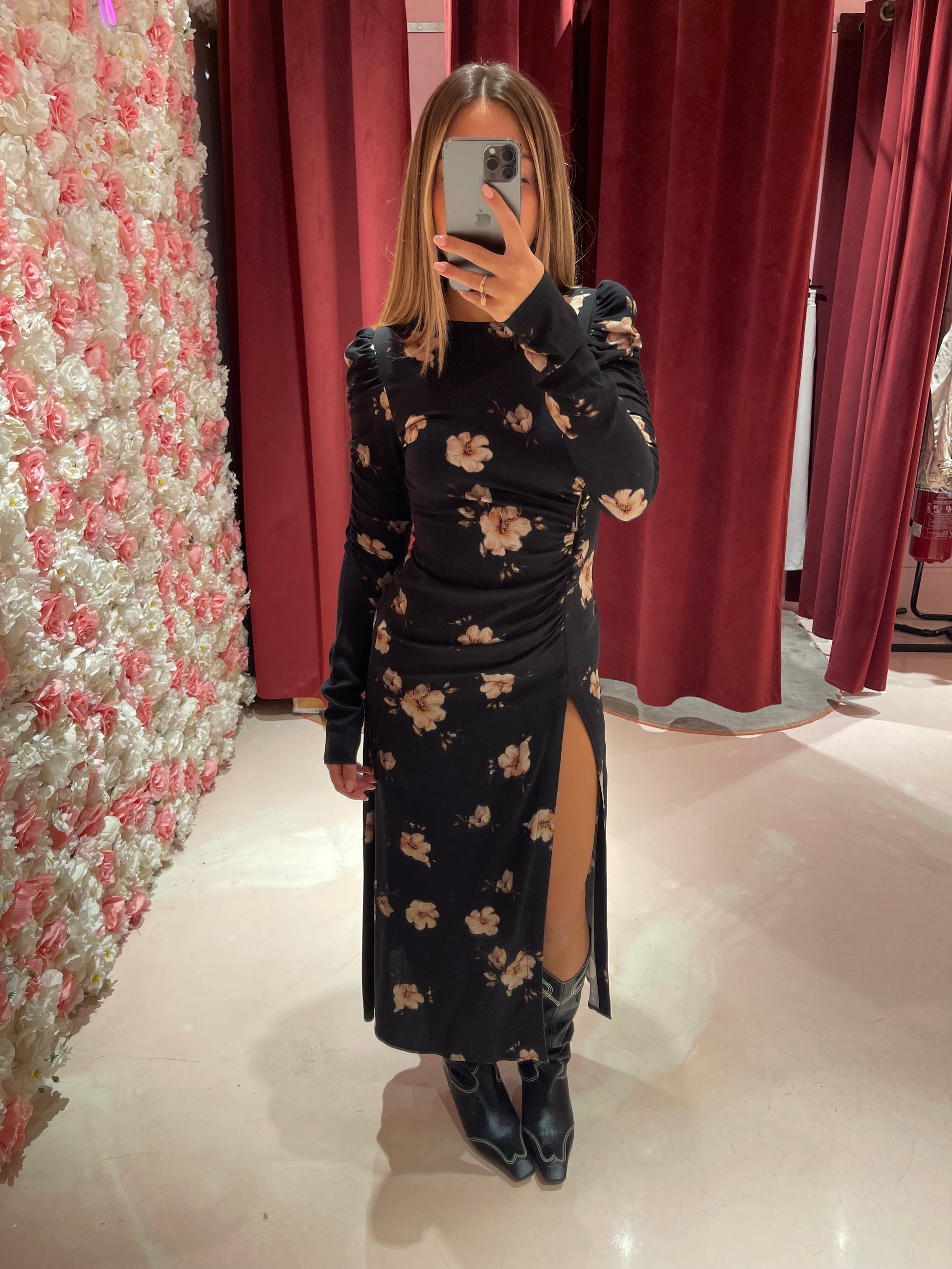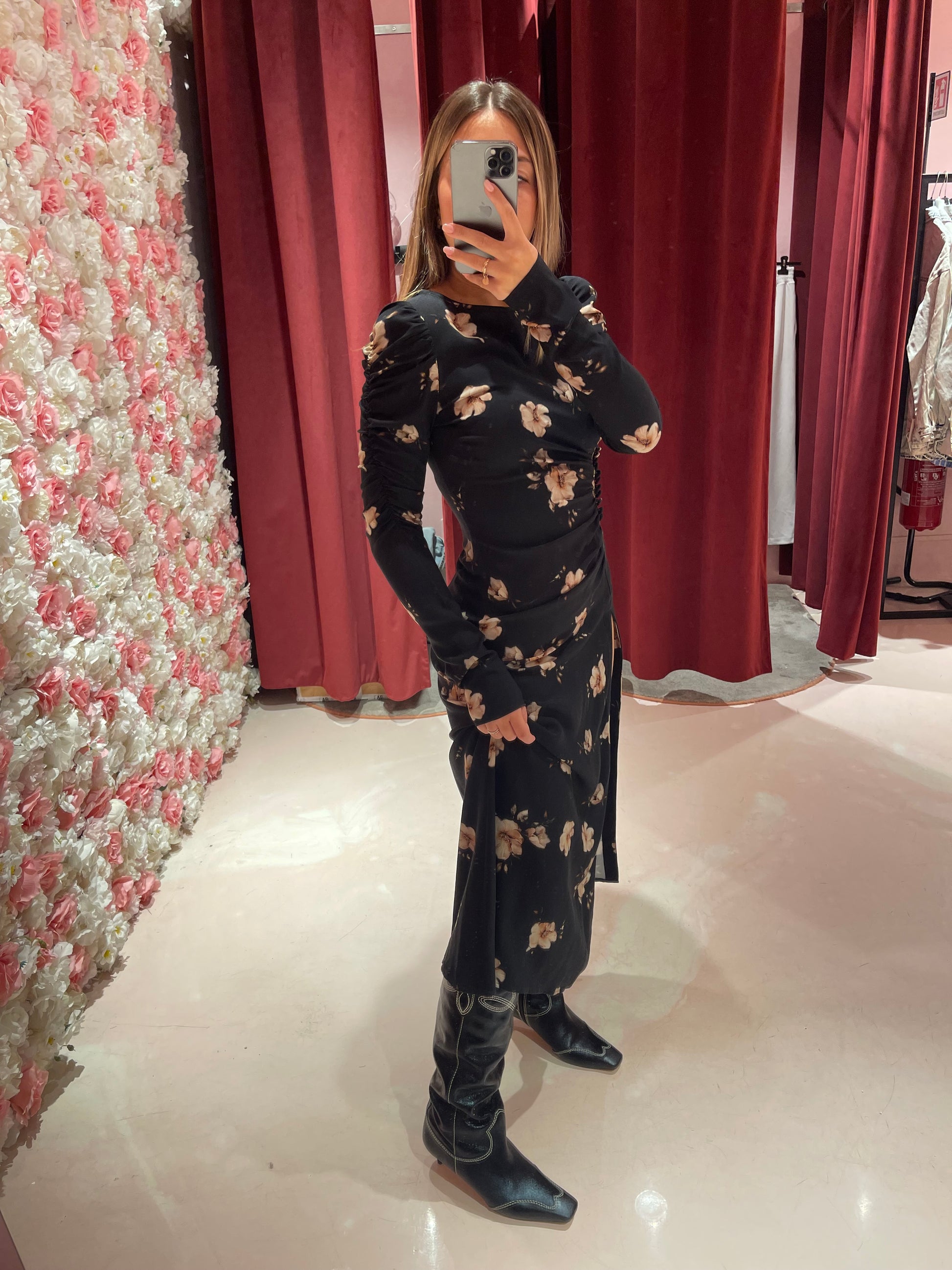 Chloe - Abito Manica Lunga • Gardenia Nero Mar de Margaritas
