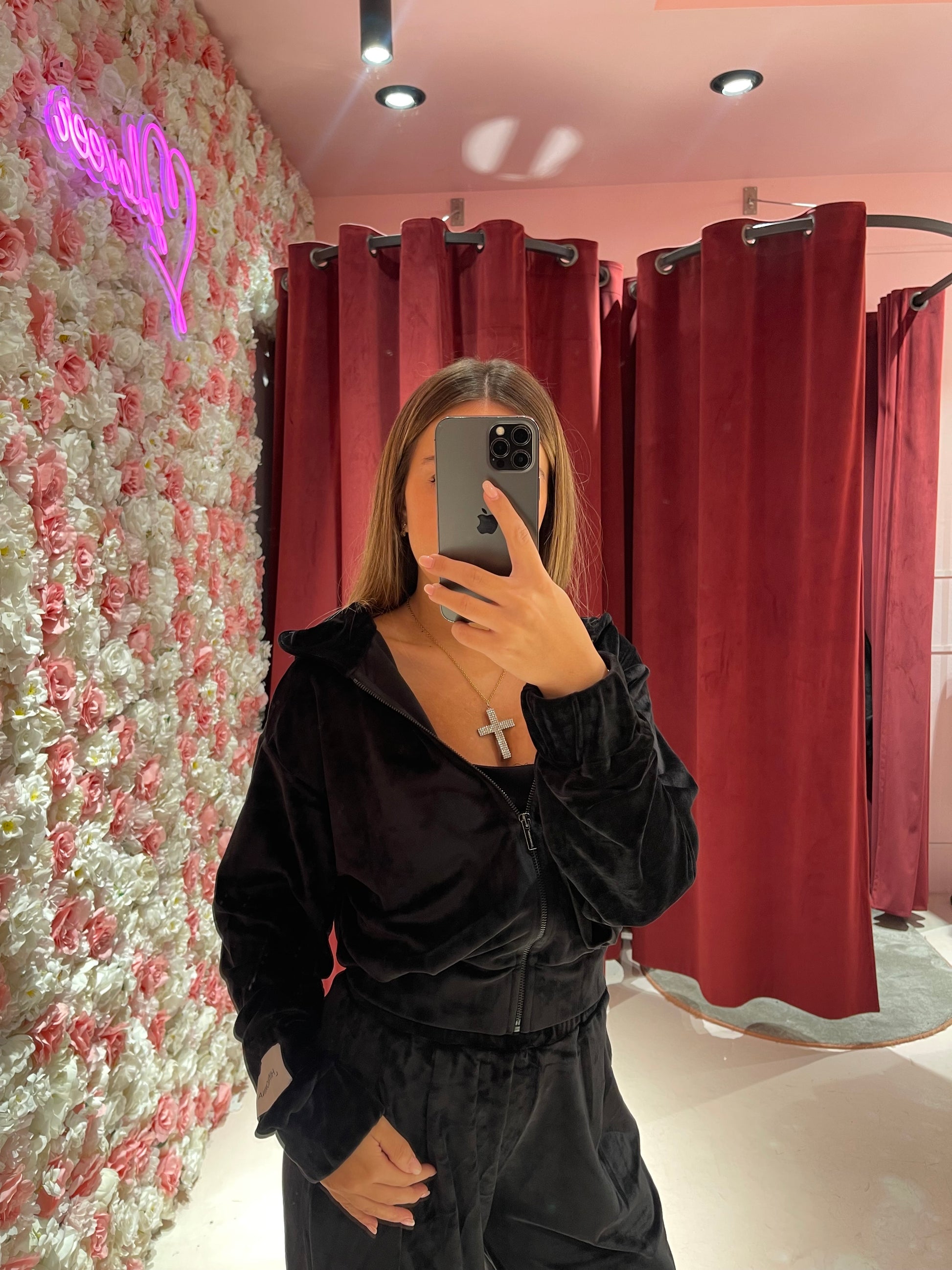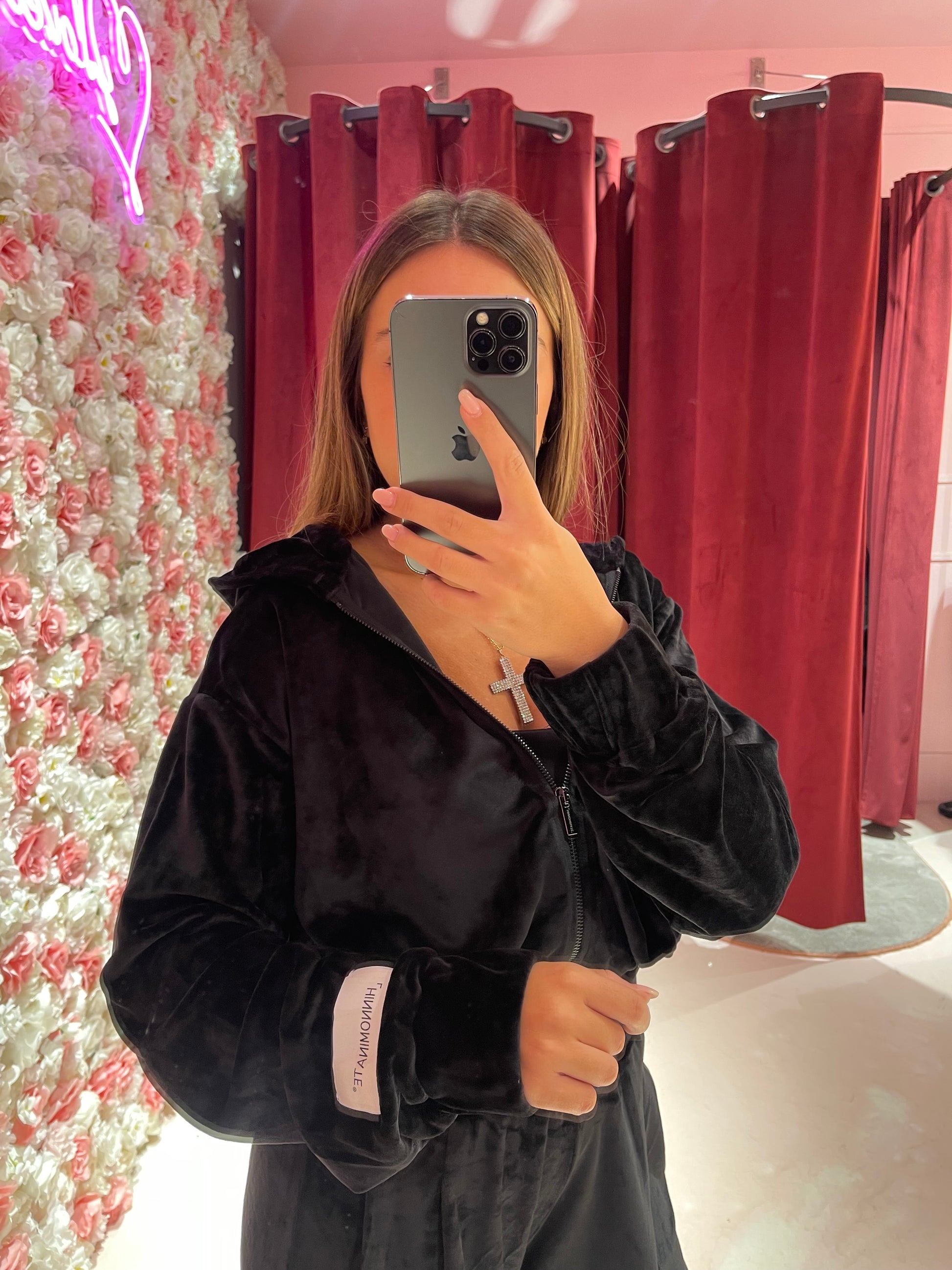 Giacca Cappuccio In Ciniglia Con Pences Alla Balza • Nero HINNOMINATE