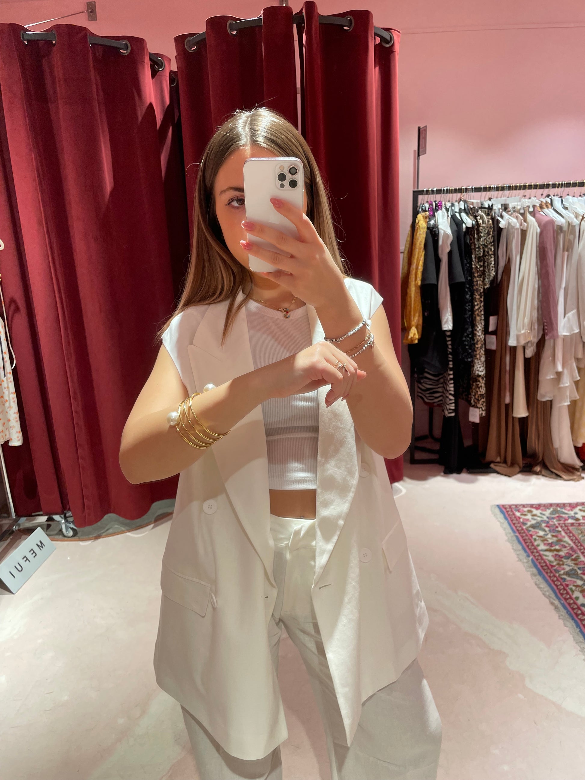 Giacca smanicata in lino doppiopetto • Bianco HINNOMINATE
