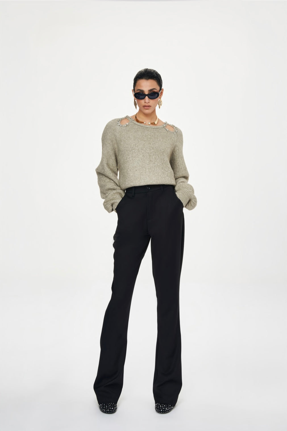 Hays Maglione cut out strass tortora Tpn