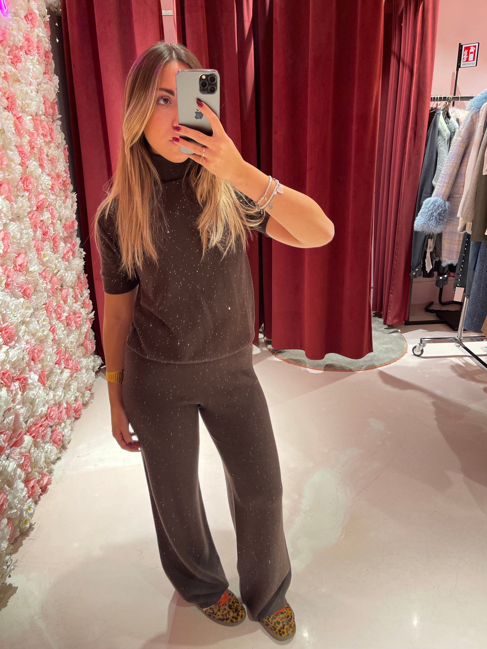 Pantalone Dritto In Maglia Con Paillettes • Moro HINNOMINATE