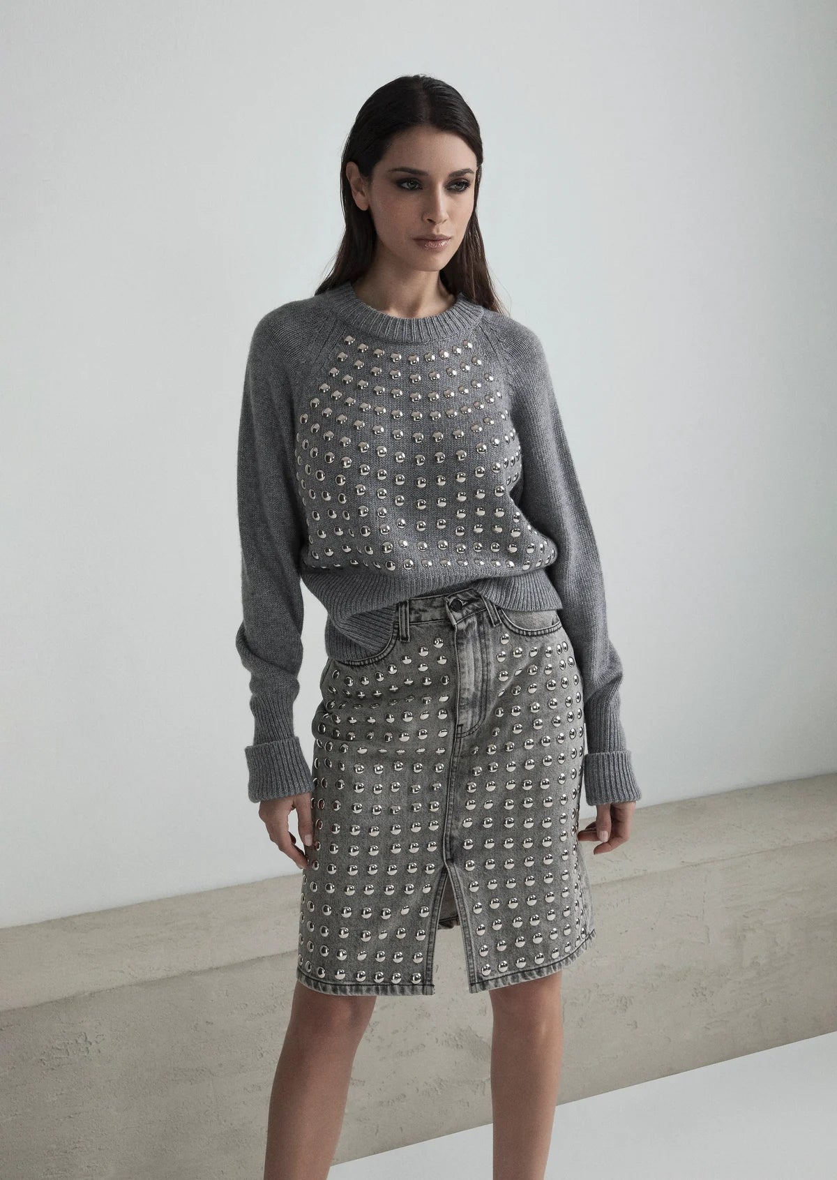 Un pullover super di tendenza sia per colore pantone e sia per applicazioen di brochie all over. Presenta uno scollorotondo polsini e fondo del corpo con bordo a coste.