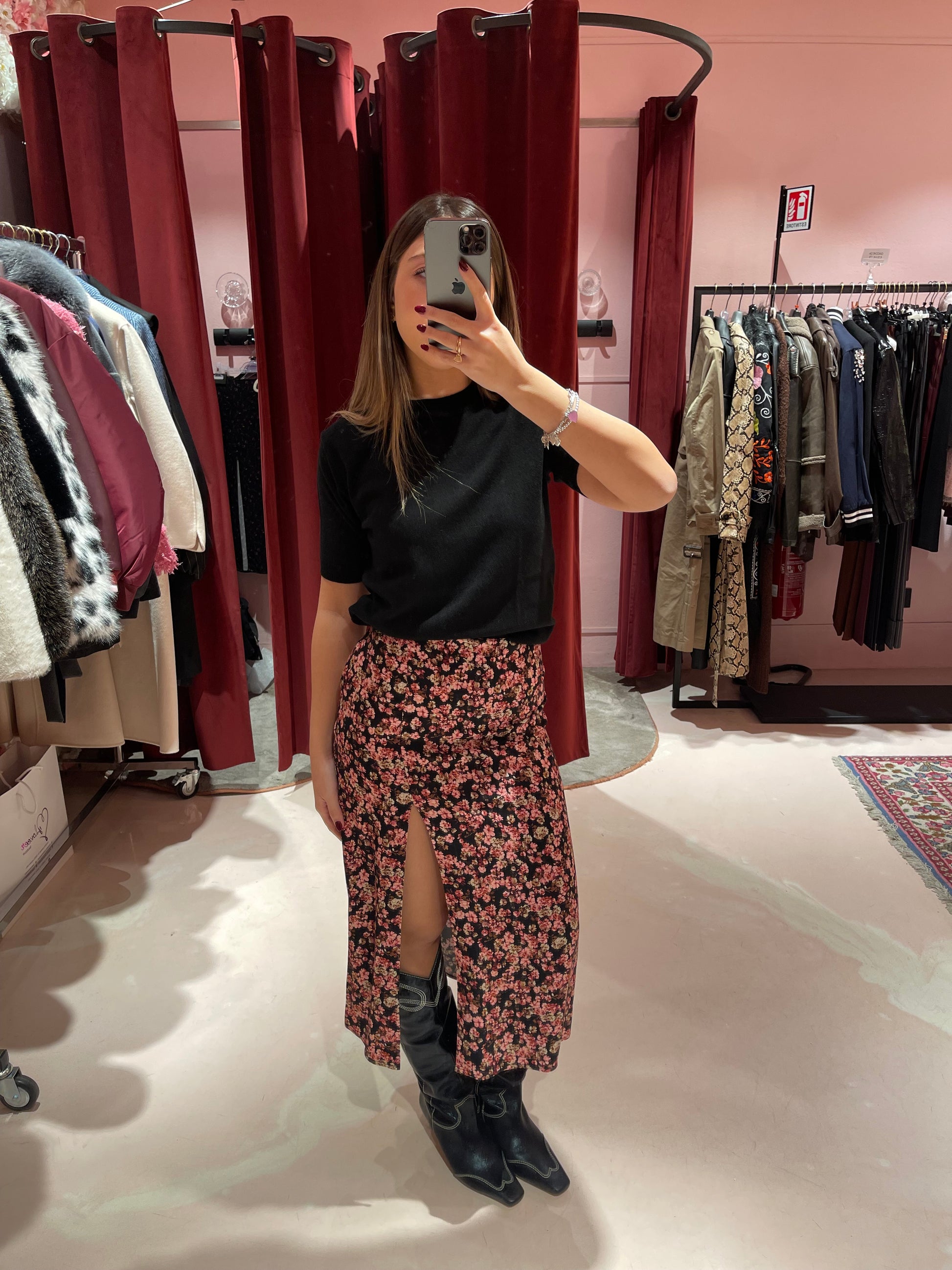 Roxana - Gonna Con Spacco Laterale • Romance Nero Mar de Margaritas