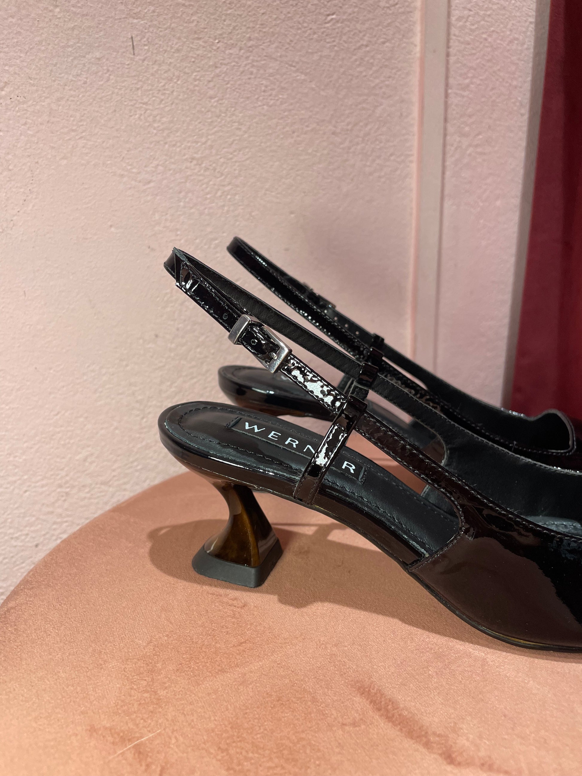 Slingback vernice nera dettaglio punta Werner
