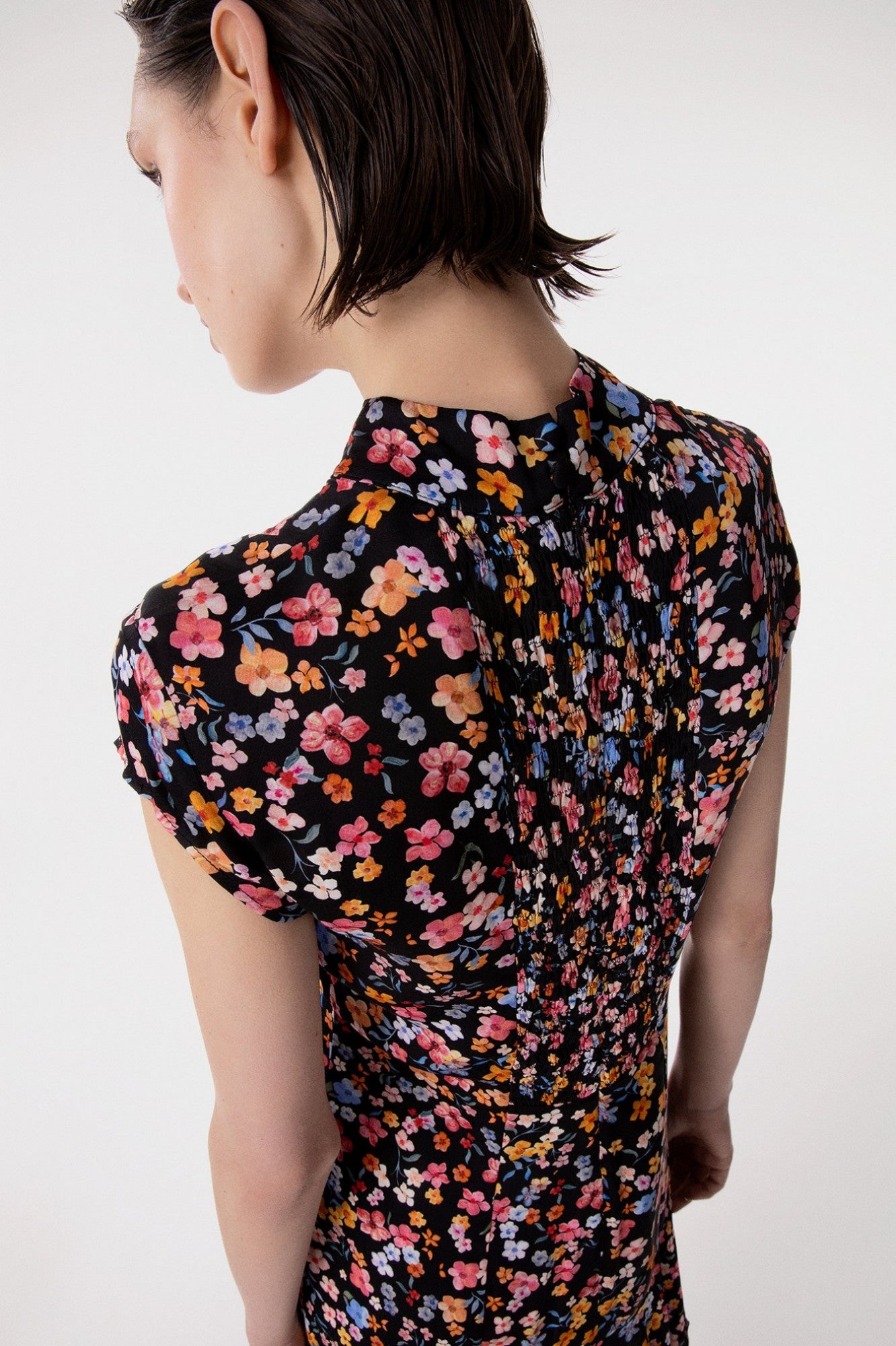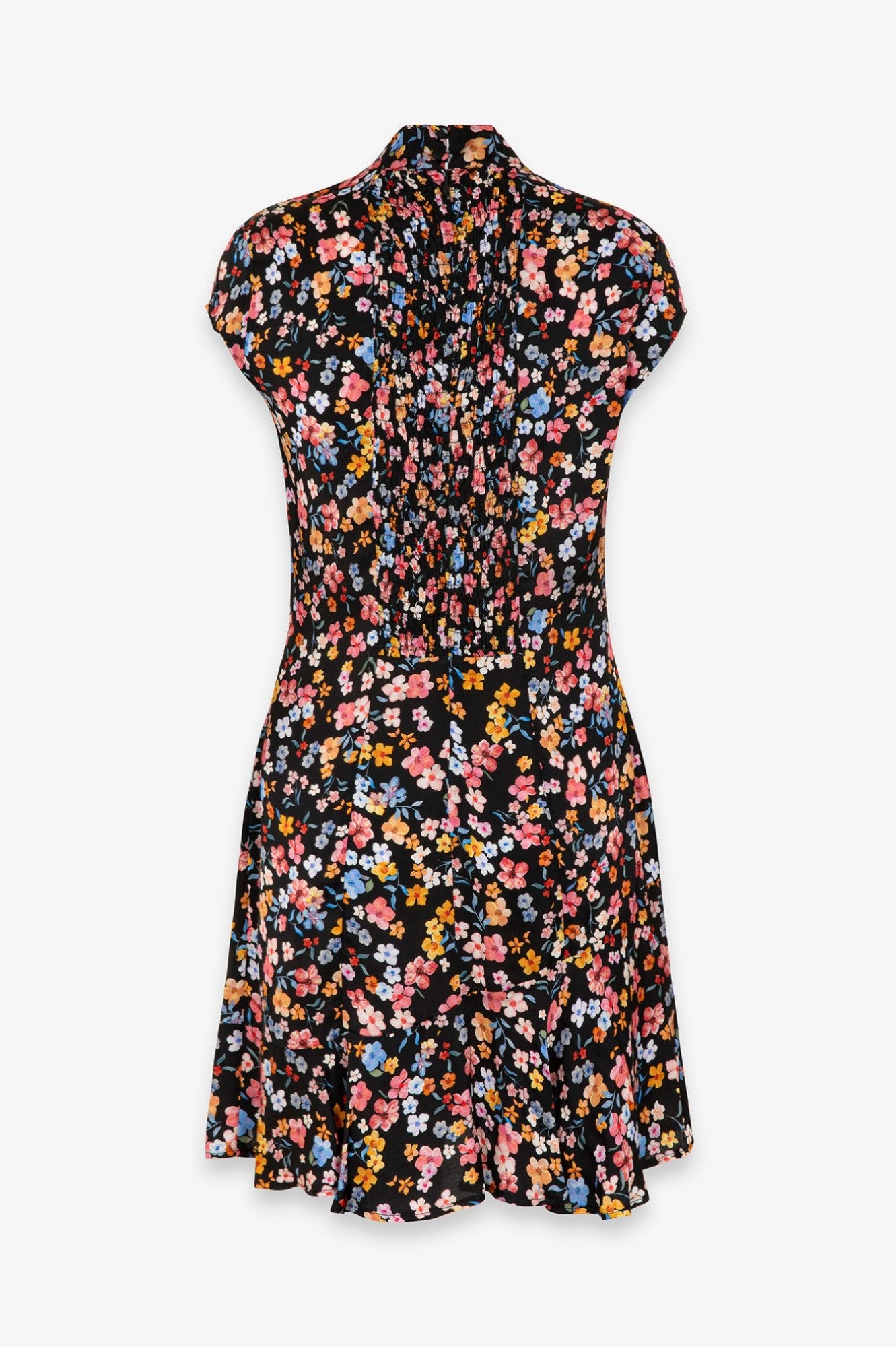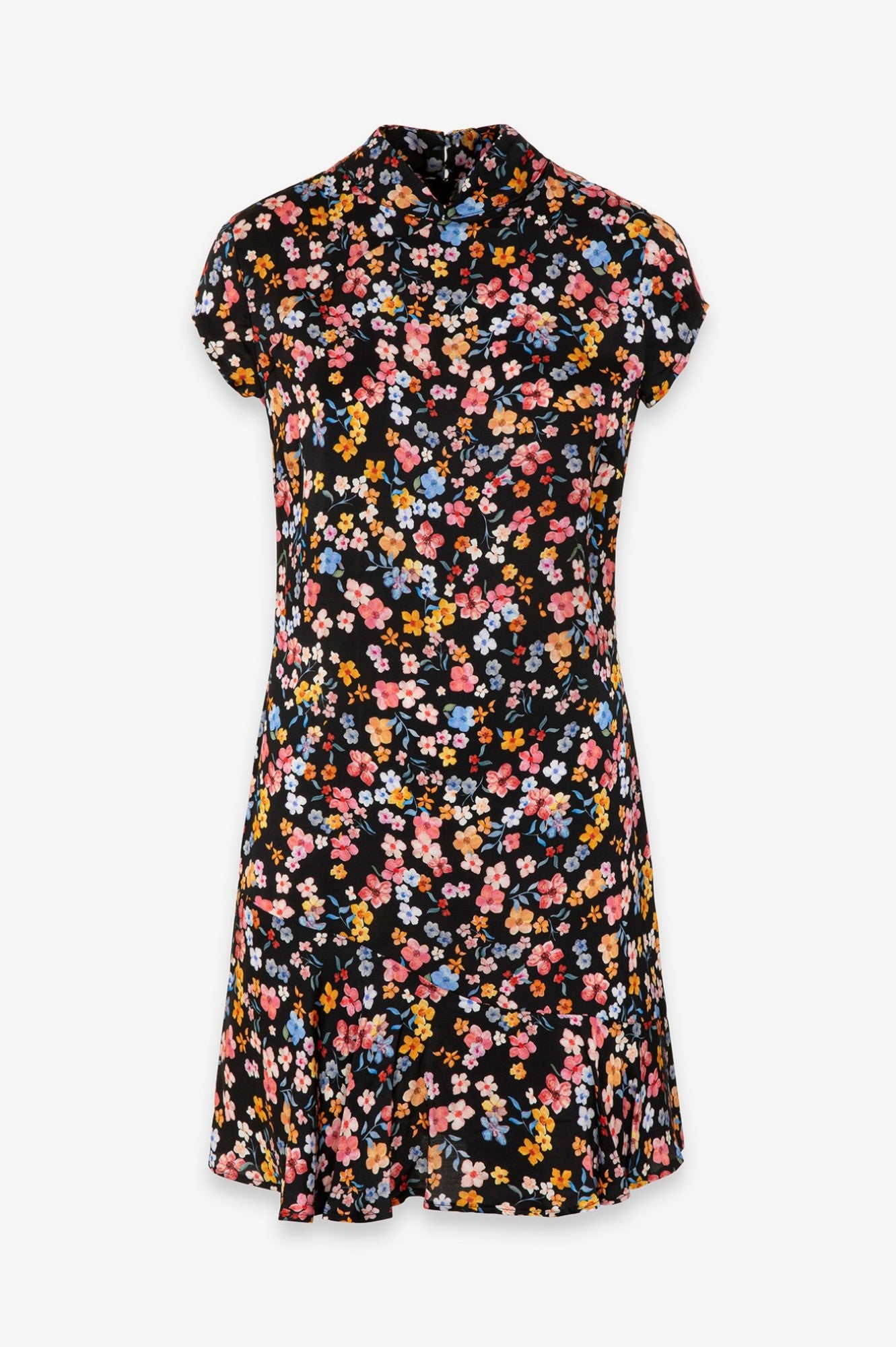 Swami - Abito Corto Mezza Manica, Collo Alla Coreana Con Volant Sul Fondo • Bouquet Nero Mar de Margaritas